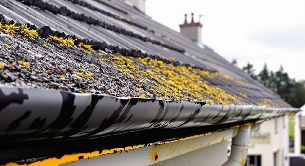 - Moss, weeds, or plants growing in gutters